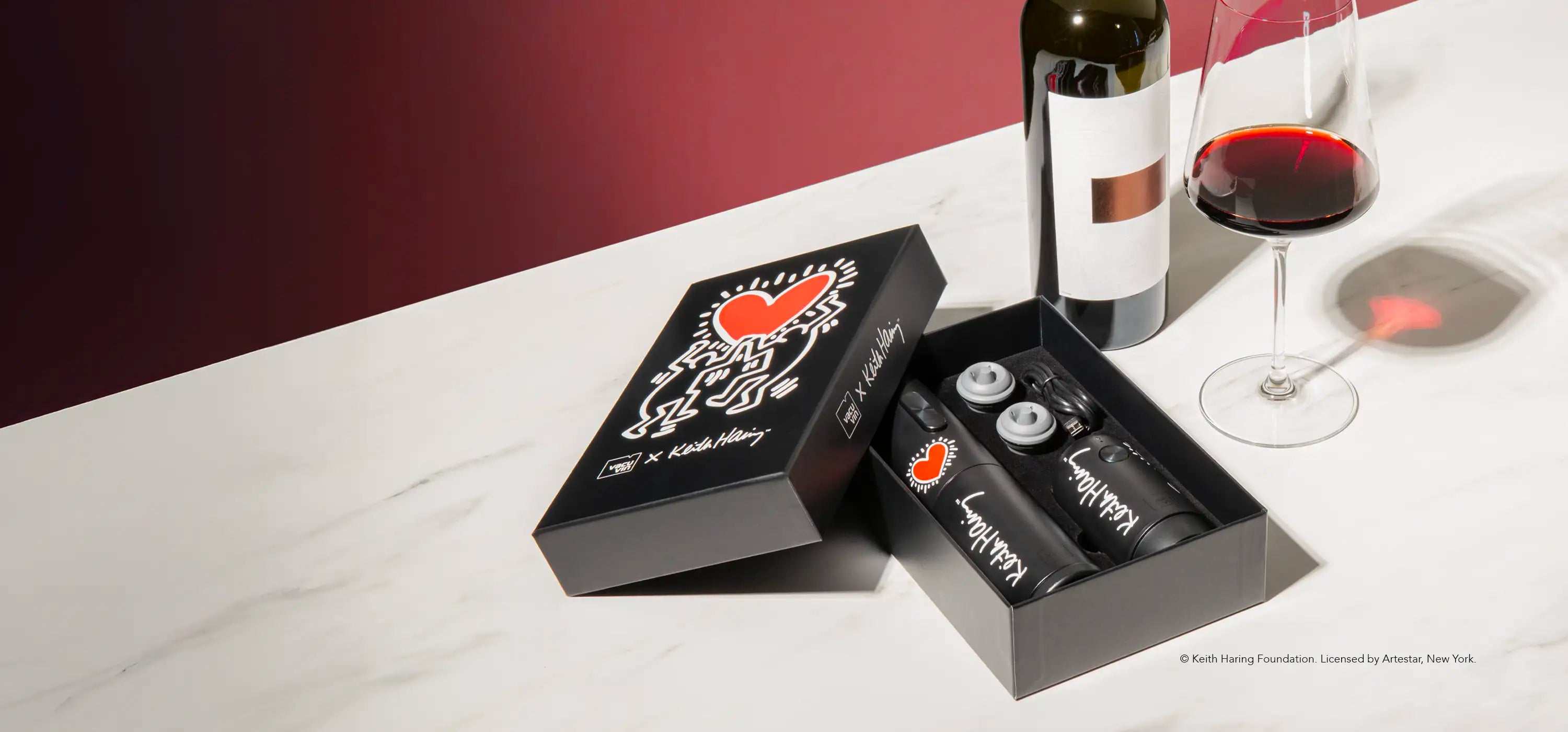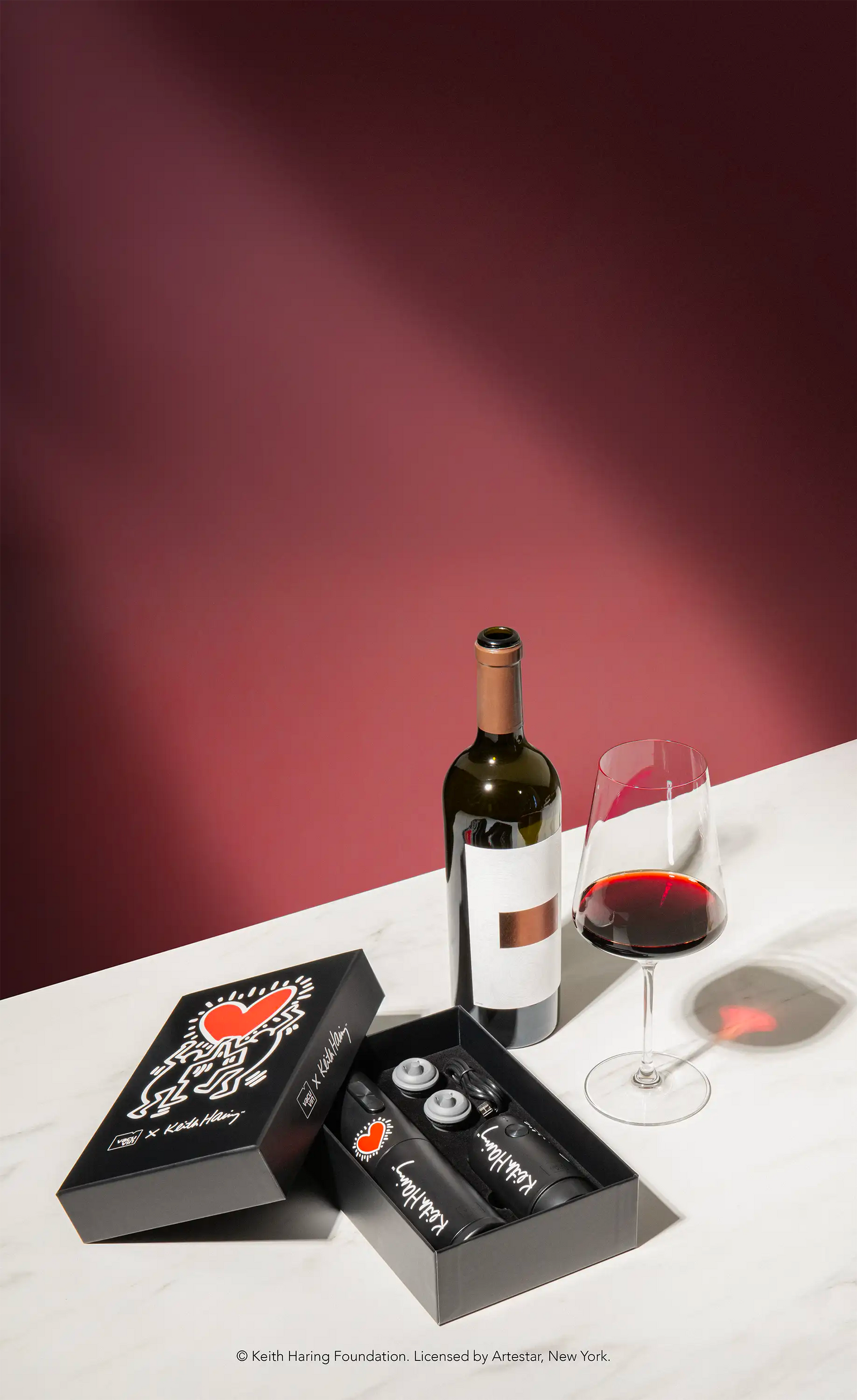 With one press of a button, the Electric Wine Opener uncorks bottles in seconds, while the Electric Wine Saver effortlessly preserves your wine’s flavor. Wrapped in Keith Haring’s bold, iconic artwork, this exclusive set is a true statement piece and a perfect gift.